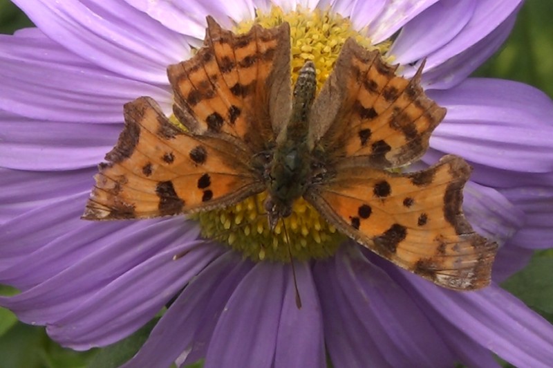 Remarque : Individu butinant une reine marguerite dans un potager, de la première génération (estivale hutchinsoni), bien usée;, assez tardive pour cette date.